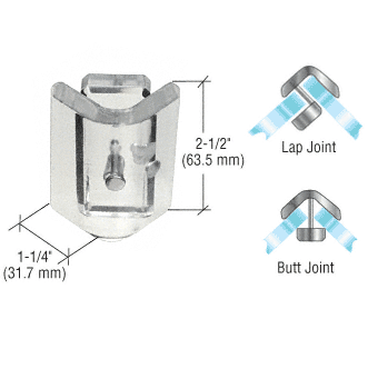 • This CRL 90 Degree Square Mall Front Clamp is installed using our Cat. No. 491012 or AT04012 Clear Very Hi-Bond Tape and Cat. No. RTV408C Neutral Cure Silicone. They join vertical glass wall panels set at right angles and provide rigidity to reduce flexing when pressure is applied. They also serve as floating indicators to alert pedestrians of a panel's presence in dimly lit areas.