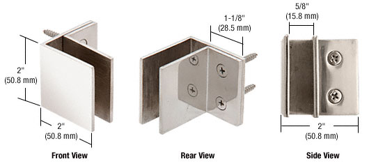 All CRL Mall Front Clamps come in polished brass, polished stainless, or brushed stainless finishes, and are designed for 3/8" to 1/2" (10 to 12 mm) glass. These clamps install easily with CRL RTV408C Clear Silicone.
